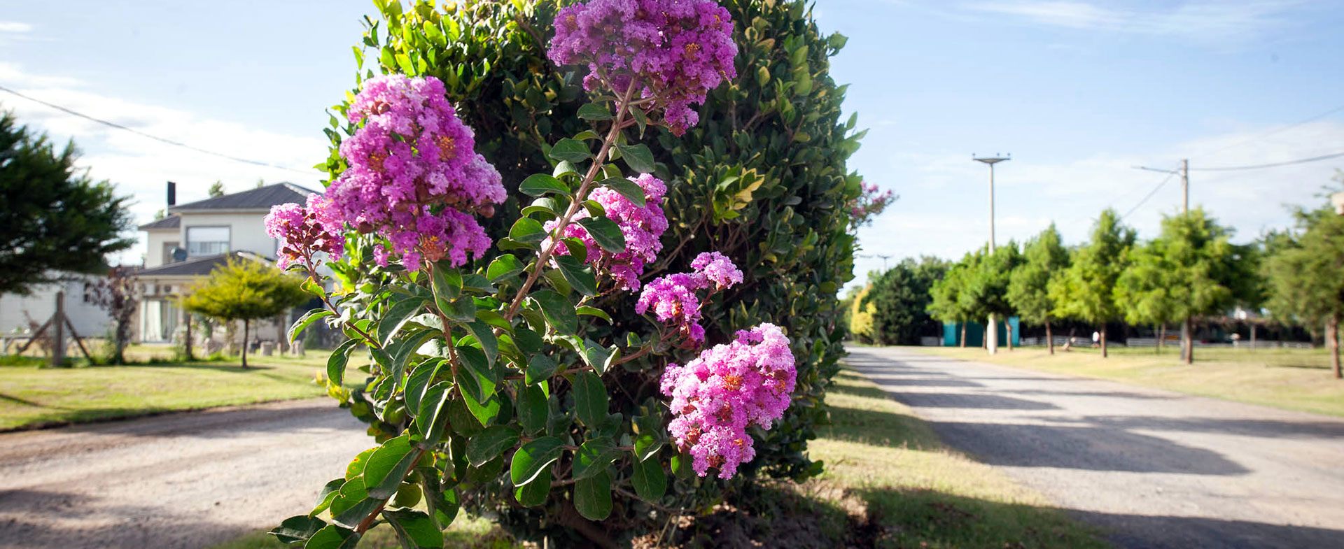 En el cantero central se plantaron crespones, árboles de hoja caduca y de flor roja, muy duradero en el verano.